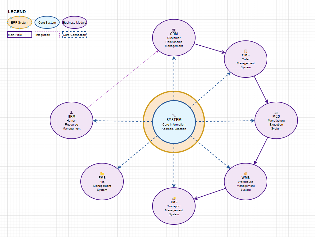 - System: module quản lí chung các thông tin như, addreess, location, market, v.v